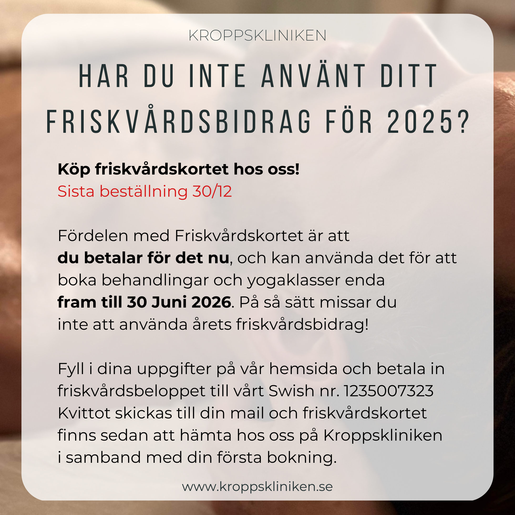 Nyttja ditt friskvårdsbidrag hos oss!